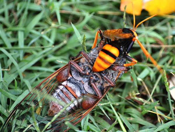 The cicada is used as food to rear the next generation of wasps.